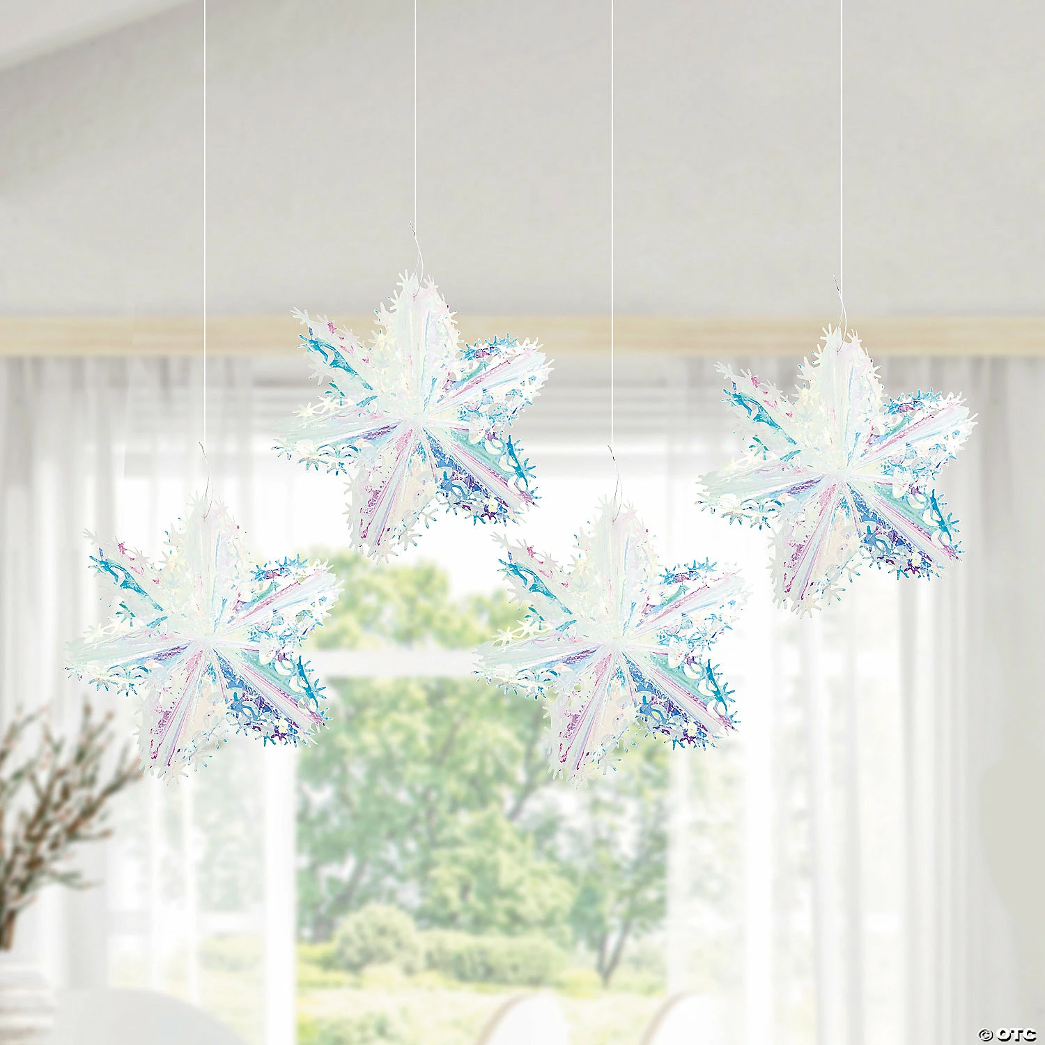 β’ BUDGET-FRIENDLY DΓCOR: Not just for parties, these snowflake hanging decorations make beautiful, affordable additions to your home dΓ©cor, classroom decorations, dorm dΓ©cor and more.β’ VIBRANT COLORS: These Christmas ceiling decorations offer a rich, vibrant color that perfectly coordinates with your party theme. β’ A TOUCH OF CLASS: Hang these stylish iridescent Christmas decorations around the room and allow them to float in the breeze to really awe your party guests!β’ PARTY SUPERSTORE: Shop Oriental Trading for all of your party supply needs, from decorations to tableware to party favors and more.Product Description:Transform your party space into a winter wonderland with these lovely snowflake decorations. They’re Christmas decorations that set your holiday party apart with elegance! Mix them in with white snowflakes and other snowy white decorations for a magical, wondrous look. Check out more winter decorations and iridescent party supplies elsewhere on this website. Size: 16″Quantity: 3Material: PlasticΒ© OTC