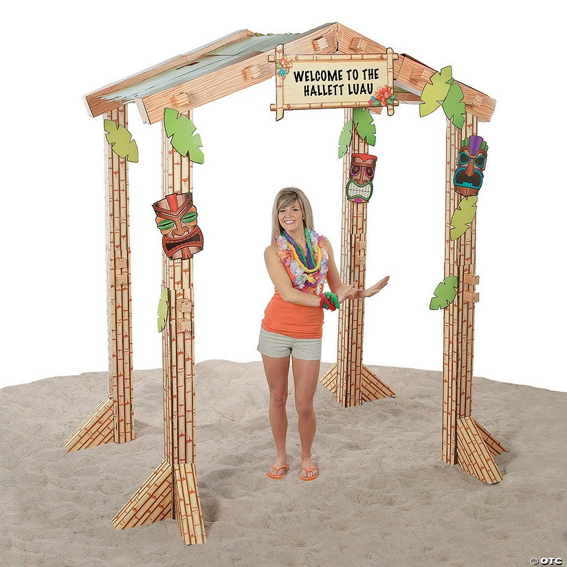 3D Tiki Hut. Liven up your luau with our 3D Tiki Hut. This large cardboard hut adds the ultimate decorative touch to your summer beach party or tropical-themed get together! Also makes a fun concession stand! Personalize the included sign with your own markers. Assembly required. 88″ x 5 ft. © OTC