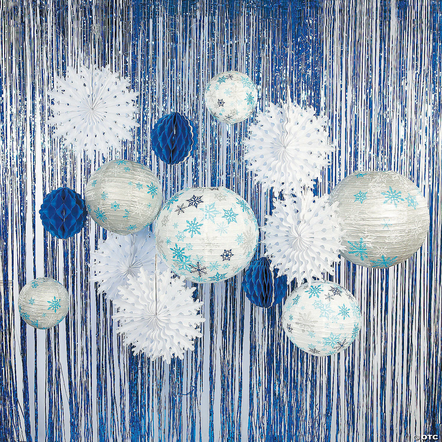 โข QUALITY DECORATIONS: These sturdy, versatile winter party lanterns can be used time and time again to celebrate any occasion in your life! Mix and match different colors to fit any party theme.โข EASILY ASSEMBLE AND REUSE TIME AFTER TIME: These snowflake hanging paper lanterns are easy to assemble and hang. Simply fold them flat after use for easy storage until your next celebration!โข PERFECT FOR ANY EVENT: Add a touch of elegant class to winter bridal showers, wedding receptions, baby showers, birthday parties, Christmas events, and most any other party with these brilliantly colored, reusable party decorations.โข A TOUCH OF BEAUTY AND CLASS: Hang these lanterns as they are or place battery-operated tea lights inside (sold separately) to add a soft, elegant glow to your event and really awe your party guests!Product Description:Dress up your winter party with these stylish snowflake decorations. Hanging paper lanterns are an affordable and elegant way to achieve your perfect party theme! Celebration classics, paper lanterns are just made for winter weddings, holiday engagement parties, winter formals, Christmas parties, and any other seasonal event that needs a bit of elegance.Size: Two each of: 8″, 12″ and 16″.Shape: Round.Quantity: 6Material: Paper.Includes wire hangers. Simple assembly required. ยฉ OTCWinter Snowflake Hanging Paper Lanterns