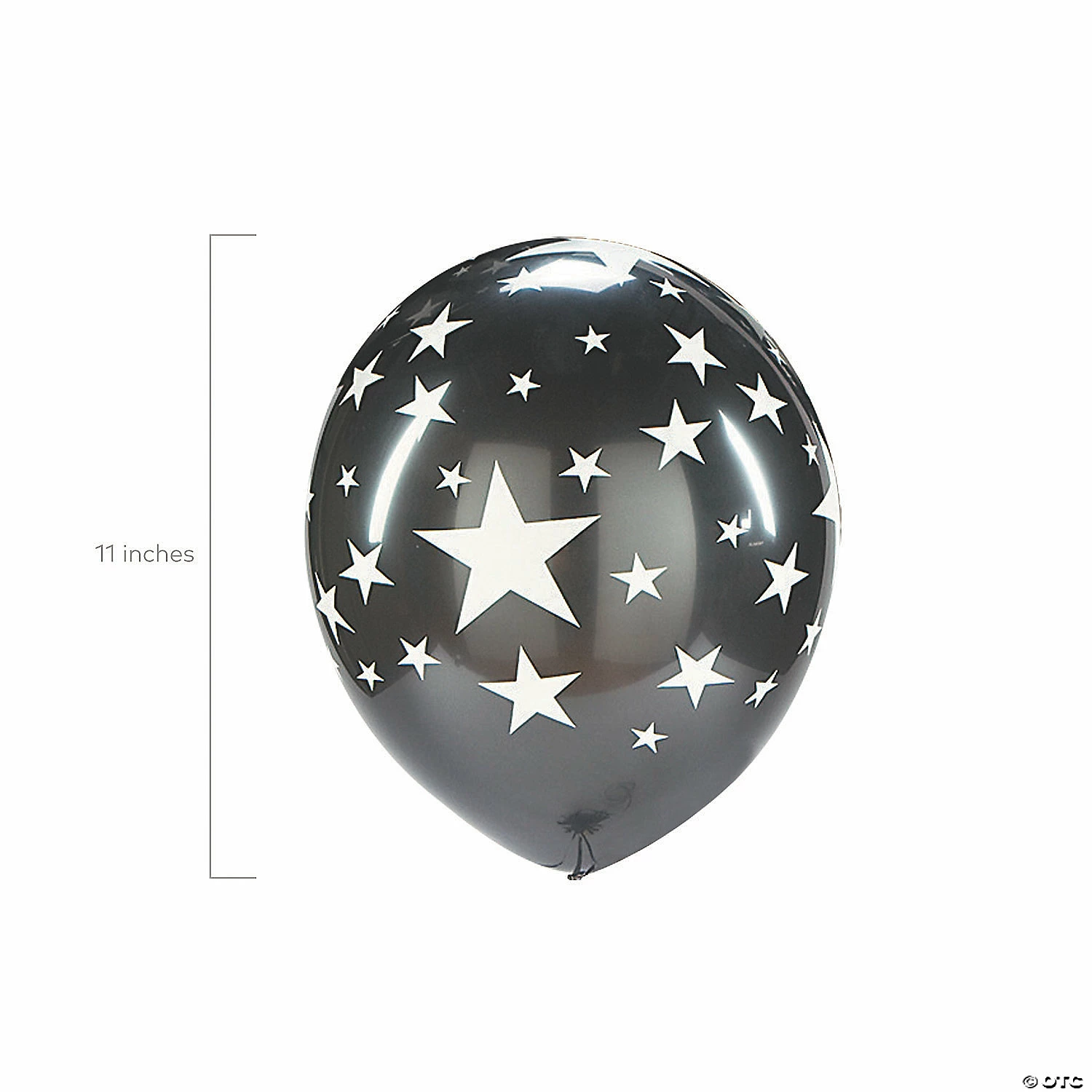 • EASY TO INFLATE: These celestial balloons are easy to inflate with air or helium! We recommend using helium if you plan to add them to balloon accessories (such as a weight with ribbon), so it stays afloat!• TURN IT INTO A DIY CREATIVE ACTIVITY: This package of high-quality star balloons can be added to arts and crafts supplies! They’re perfect for a range of art projects and creative endeavors.• BUDGET-FRIENDLY DIY DÉCOR These affordable 11” helium-grade black and silver balloons are a fun way to add a festive style and party spirit to any celebration!• QUALITY DECORATIONS: If you’re planning a NYE party or prom, these elegant balloons have you covered. They’re quality latex balloons that can easily be mixed and matched with other balloon options for your ideal color scheme or event theme.Product Description:To create an out-of-this-world atmosphere, add these star-studded black latex balloons to your party decorations. Helium balloons are a fabulous way to create centerpieces and balloon bouquets. These stunning party supplies are also a great for jazzing up the dance floor; fill them with regular air and scatter them about the room! Glam silver-and-black balloons are ideal additions to your prom, cocktail party, New Year’s Eve celebration, or black-tie event. Helium not included.Size: 11″Quantity: 24 Material: Latex© OTC