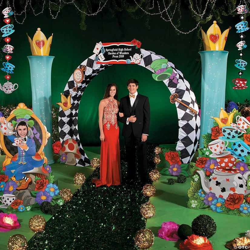 Create a world where everything is what it isn’t for your looking glass themed prom, surreal tea party or corporate event with an enchanting garden of wonders party decorating kit. Take a picture of your guests with one of these enchanting photo backdrops, and give it to them as a party favor to remember their mad adventures.Includes: โข 3 Foam Garden of Wonders Centerpieces (10 1/2″ x 9 3/4″ diam.)โข 4 Paper Garden of Wonders Hanging Decorations (12 ft.)โขย 1 Cardboard Mad Hatter Stand-Up (47″ x 62″)โขย 1 Cardboard Tea Cup Stand-Up (52 1/4″ x 57″)(9 pcs. per unit) Stand-ups are one-sided with a brown cardboard back. Simple assembly required. ยฉ OTC