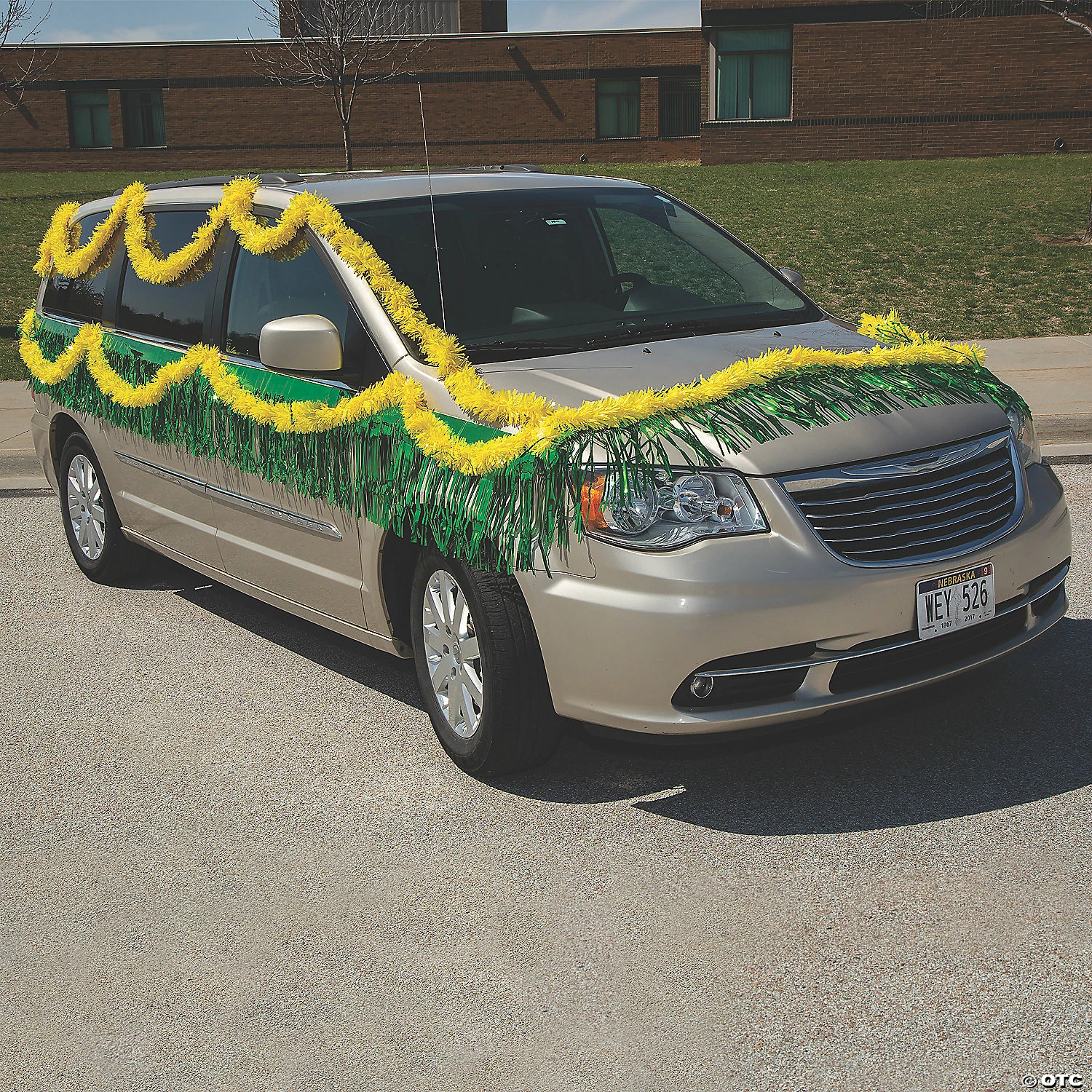 Green and gold never gets old — and it will look amazing brightening up your vehicle for a car parade! Use this car decor kit to show your students that you’re still thinking about them or healthcare workers that you appreciate all they do. This parade kit also is perfect for a drive-by birthday party, social distancing graduation party parade or shower parade. (5 pcs. per unit) Assortment may vary.Includes:• 3 Foil Metallic Fringes (10 ft. x 15″)• 2 Vinyl Float Twists (25 ft. x 4″)