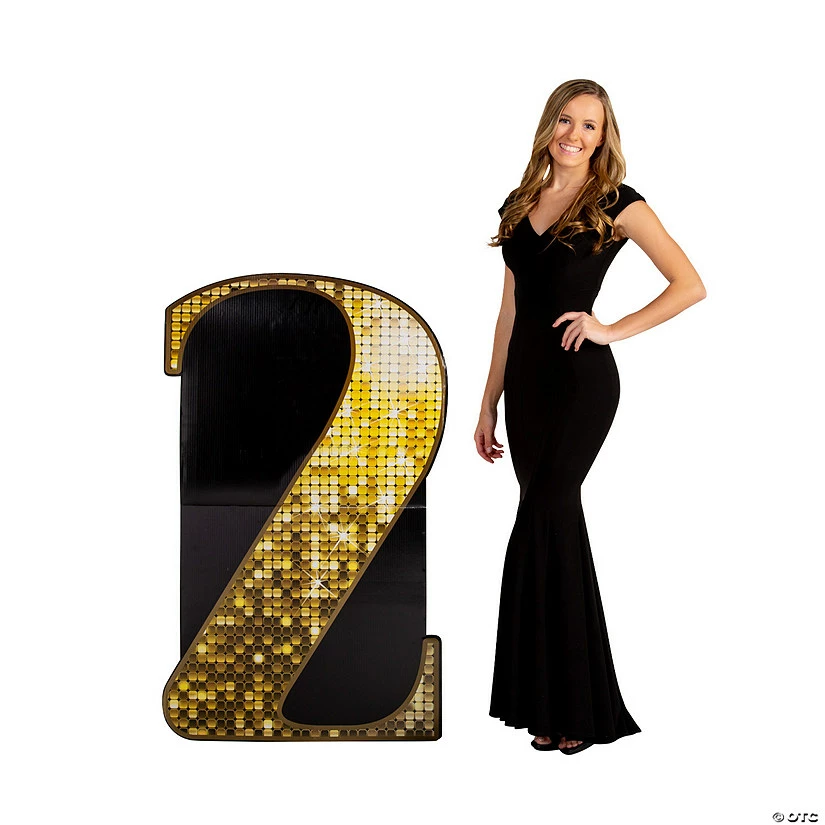 Celebrate a second anniversary, birthday or second place with this impressive stand-up. Designed to look like a tall number 2, this stand-up has a design that mimics a shimmery surface. Great as a prop in a photo booth, this tall number 2 is a good choice for party decorations or to display a big accomplishment involving the number two. Cardboard. 29 3/4″ x 49 1/2″ Simple assembly required.Β Stand-ups are one-sided with brown cardboard backs. © OTCNumber 2 Stand-Up Instructions