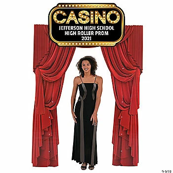 Great for casino-themed birthday parties, proms and more, this high roller casino custom arch sign will help give your party a distinct advantage. Nothing says high class like personalized event decorations! Bonus: You wonβt have to up the ante on your party budget with this affordable party dΓ©cor. Personalize with 3 lines of text. Cardboard. 47″ x 27″ Arch not included. Β© OTC