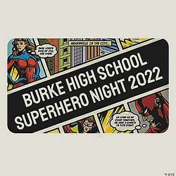 If you’re gearing up for an action-packed superhero event, whether it’s a prom or homecoming, or it’s a corporate event or fundraiser, personalize the sign with the details of your event for a great way to welcome guests. Perfect for affixing to the top of an arch along with other superhero event decorations throughout the arch. Personalize with 2 lines of text. Cardboard. 46″ x 27″ Arch sold separately. © OTC