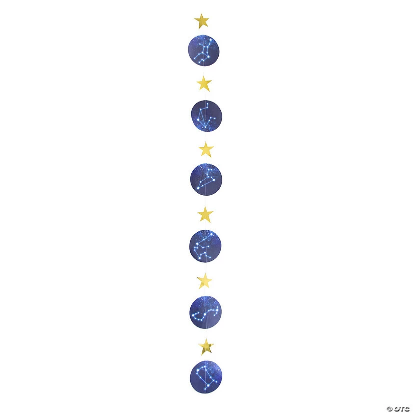 Launch your celebration into the stars with help from this awesome strand of stars and constellations! A fun addition to your space party decorations and party supplies, this hanging decoration features various constellation cutouts interspersed with shiny gold star cutouts. Check out more space party decorations elsewhere on this website. Cardstock and foil. Hangs approx. 12 ft. © OTC