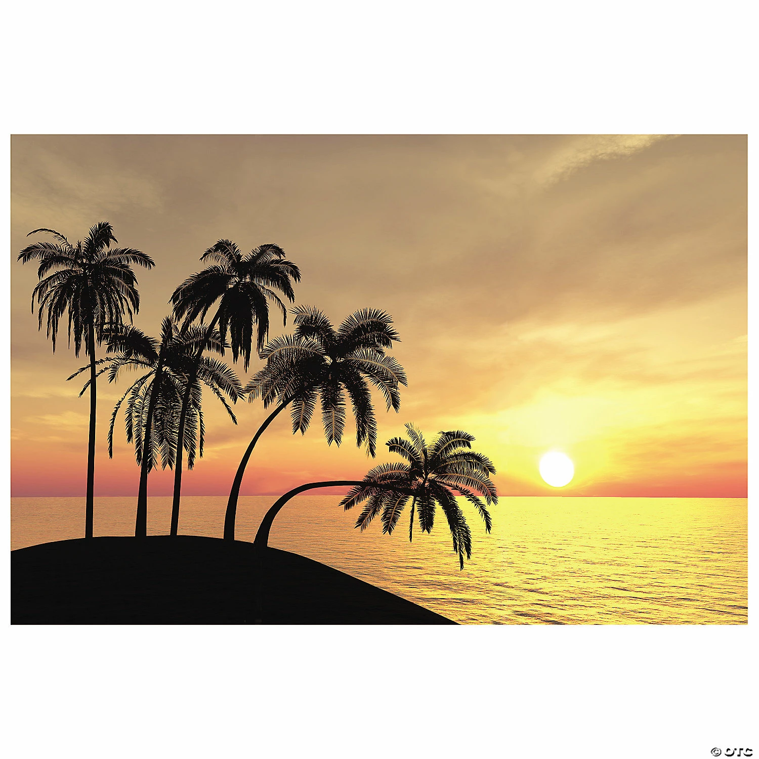 Looking for Hawaiian luau decoration ideas? Transform any room into a surreal island backdrop instantly with our large photorealistic Sunset Beach Backdrop Banner. Perfect for creating a tropical paradise no matter where your event may be, just put the three plastic pieces together to create this lush background that all your guests will want their photo in front of. (3 pcs. per set) Completed, 9 ft. x 6 ft. Simple assembly required. ยฉ OTC