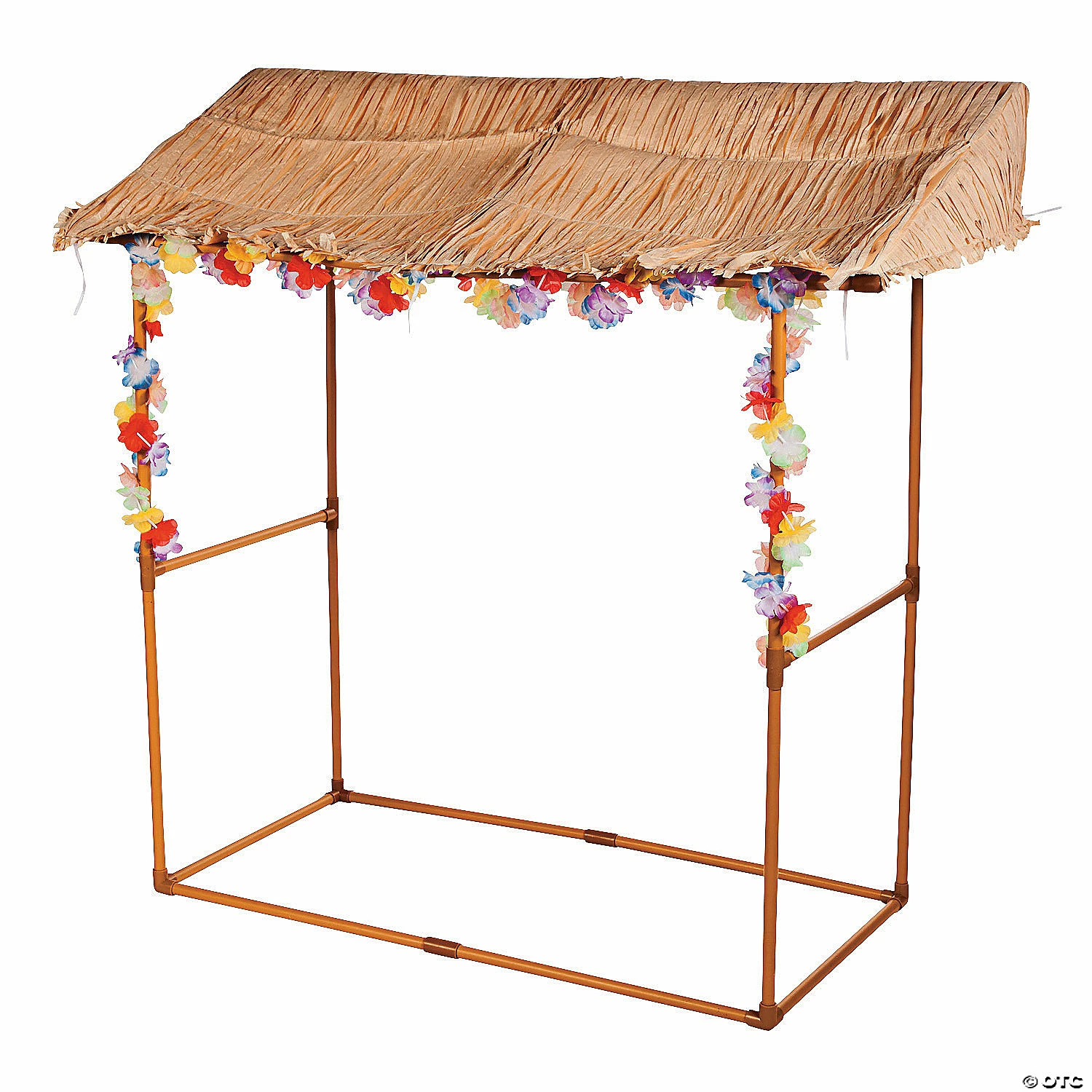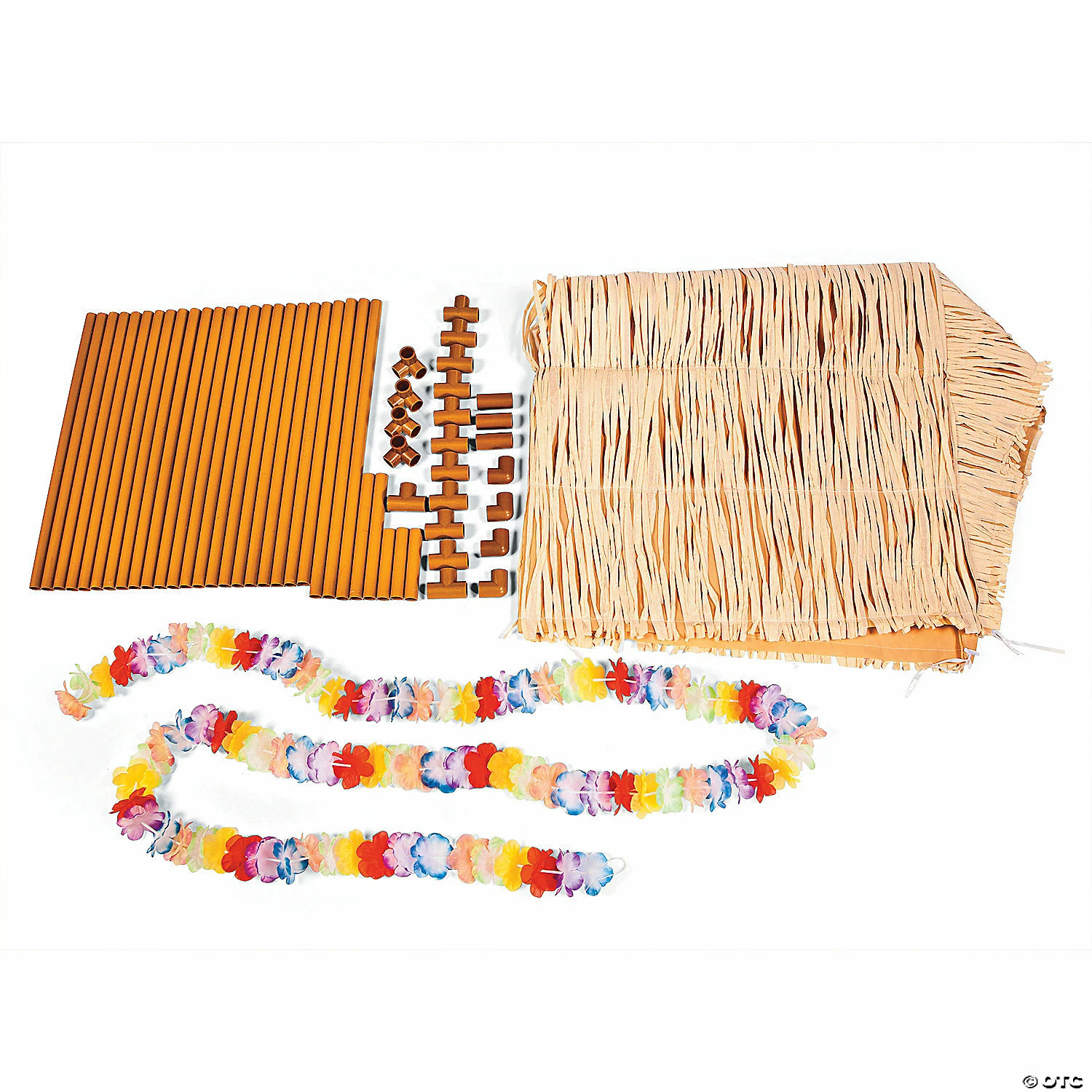 This Tabletop Tiki Hut is a must-have addition to your luau party supplies! An eye-catching centerpiece, this festive hut made from plastic poles, a raffia cover and polyester garland stands 46 1/2″ on your table. Use it to decorate at a beach party, luau or tropical-themed get together. Assembly required.Tabletop Tiki Hut Instructions