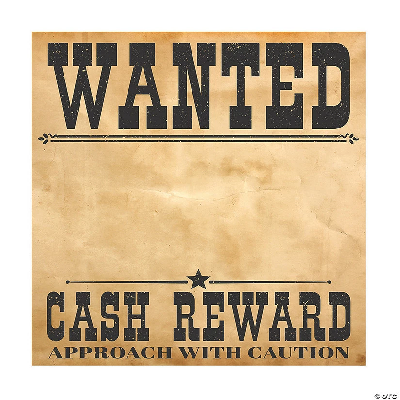 What should you do when a gang of rascally varmints show up at your gathering? If itβs an old West party, you put them in front of a wanted sign, of course! Snap some photos and watch the real fun begin as guests start posing and acting for the camera. Have some Western photo props available (you can find them here on this website!) and your Western photo booth will be a hit! Make your Western decorations the rootinest tootinest best around! Plastic. (2 pcs. per set) Assembled, 6 ft. x 6 ft. Β© OTC